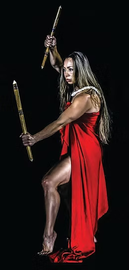 She now empowers thousands of women by integrating Hula with Lua, using the dance to develop essential combat skills such as timing, balance, placement, and biomechanics. She teaches this method internationally, including at UCLA, Honolulu Community College, and her private school, Nā Koa/Pā Lua O Manu.